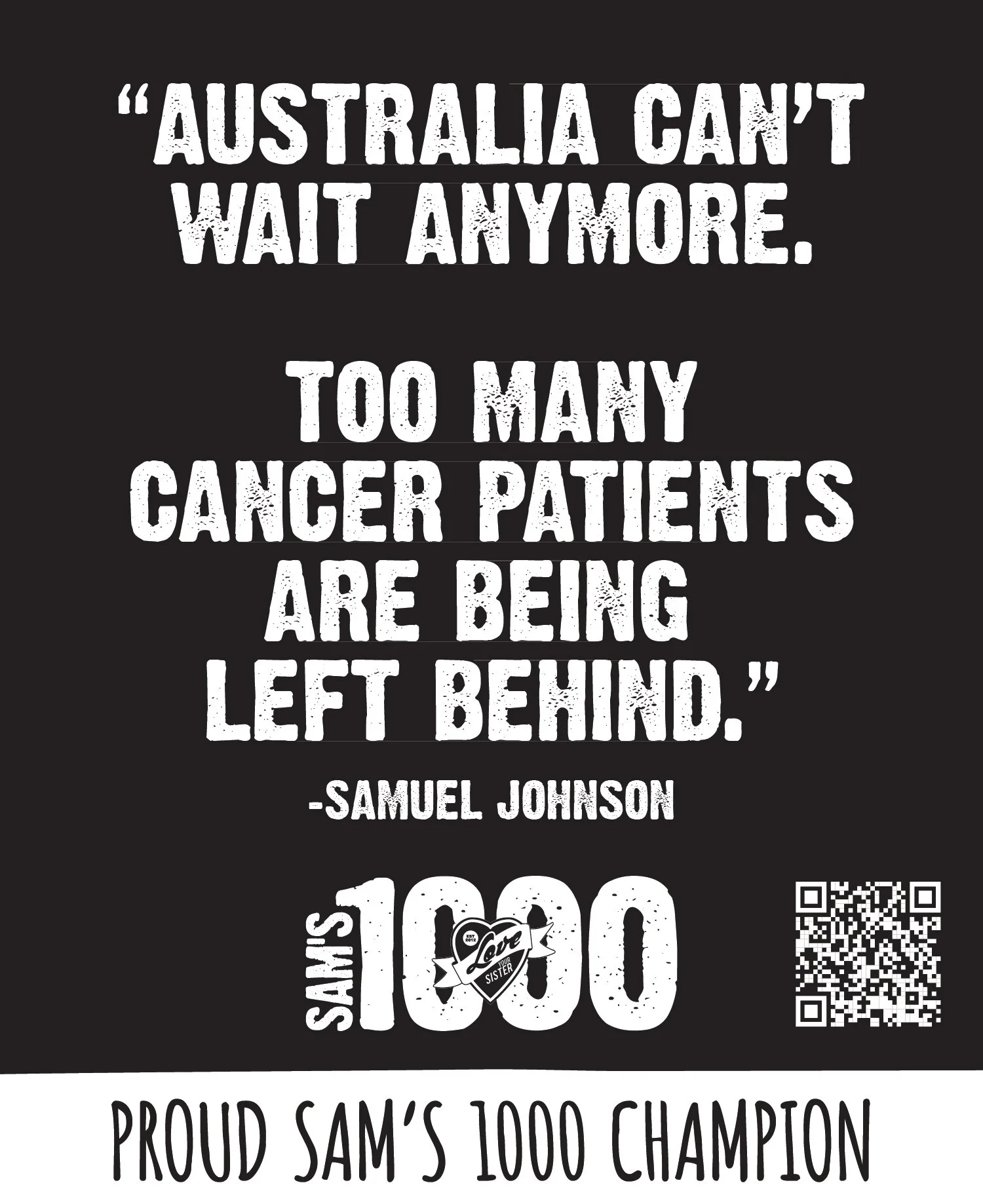 “Samuel Johnson is embarking on another epic quest. He is calling on 1000 businesses to help provide Precision Medicine for cancer patients everywhere, because we are sick of losing our loved ones.”
